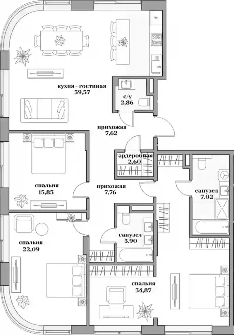 4-к.квартира, 146.37 м², 5 эт. в ЖК Садовническая, 69 Корпус 3 Сириус