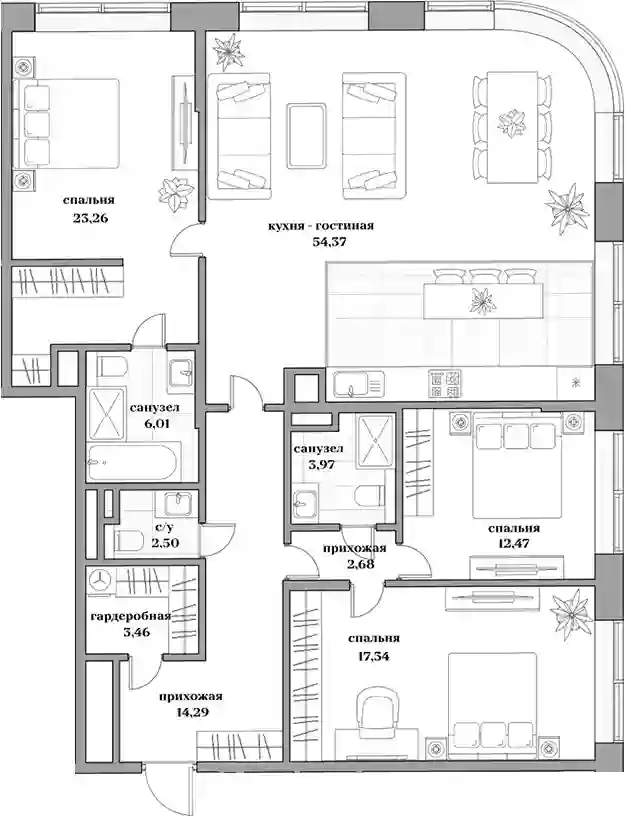 4-к.квартира, 141.61 м², 6 эт. в ЖК Садовническая, 69 Корпус 4 Арктур
