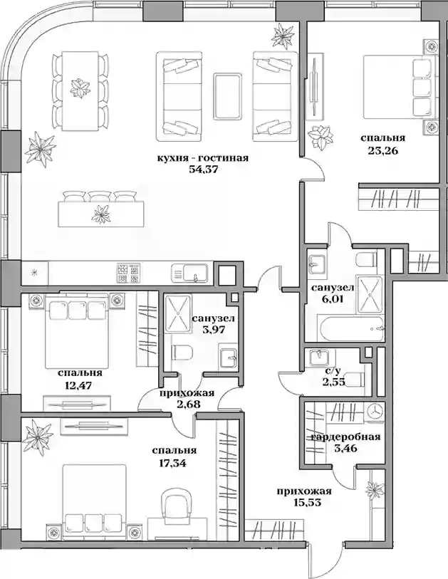 4-к.квартира, 141.64 м², 2 эт. в ЖК Садовническая, 69 Корпус 4 Арктур