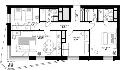 3-к.квартира, 107.64 м², 2 эт. в ЖК СберСити Корпус B21.1 Advanced