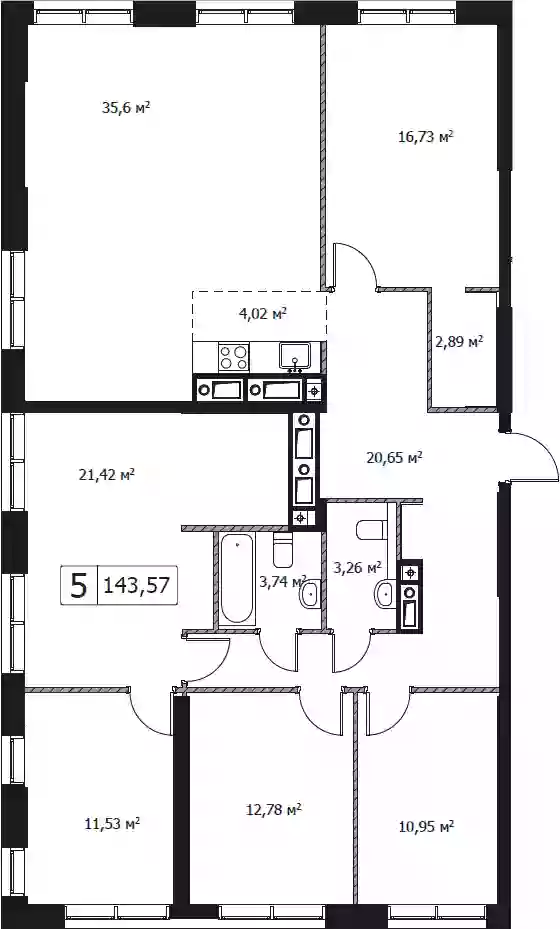 5+к.квартира, 143.57 м², 19 эт. в ЖК Self Корпус 2.1
