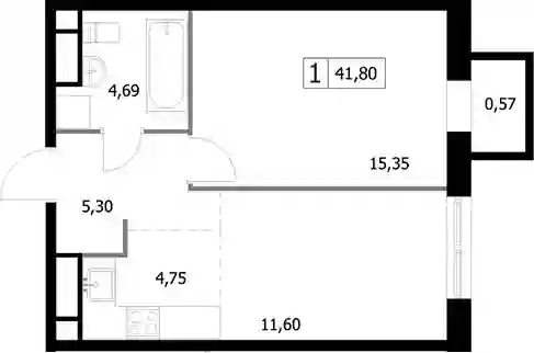 2-к.квартира, 41.23 м², 4 эт. в ЖК Self Корпус 2.2