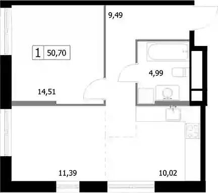 2-к.квартира, 50.7 м², 7 эт. в ЖК Self Корпус 2.2