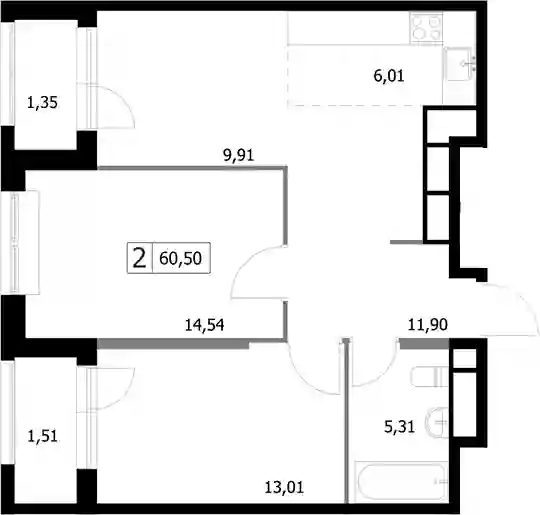 3-к.квартира, 57.64 м², 16 эт. в ЖК Self Корпус 2.2