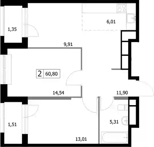 30 103 732 ₽3-к.квартира, 60.8 м², 3 эт.