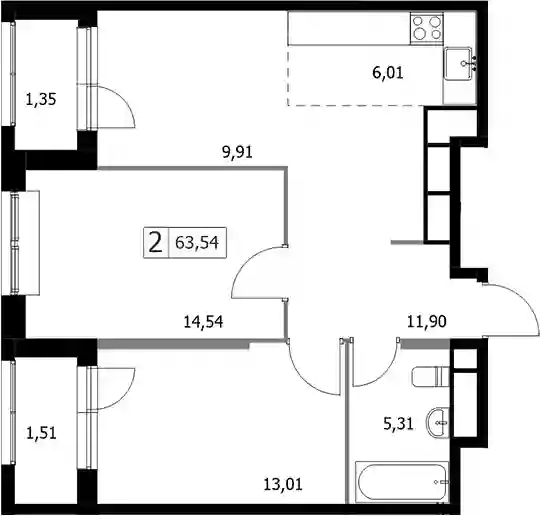 3-к.квартира, 58.14 м², 13 эт. в ЖК Self Корпус 2.2