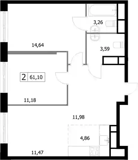 3-к.квартира, 61.1 м², 16 эт. в ЖК Self Корпус 2.2