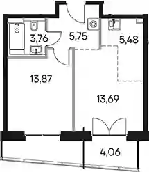 2-к.квартира, 42.55 м², 27 эт. в ЖК Селигер Сити Корпус Башни Лисицкого