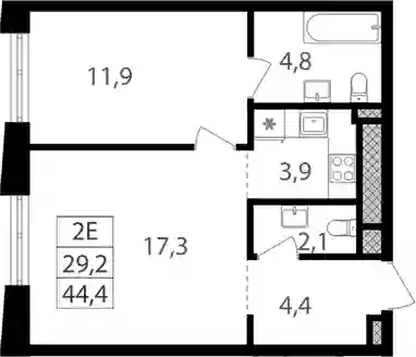 17 479 000 ₽2-к.квартира, 45.4 м², 3 эт.