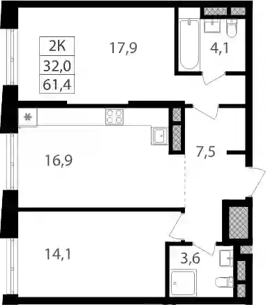23 844 900 ₽2-к.квартира, 61 м², 3 эт.