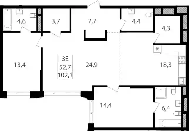 3-к.квартира, 102.1 м², 9 эт. в ЖК Семеновский парк 2 Корпус 1