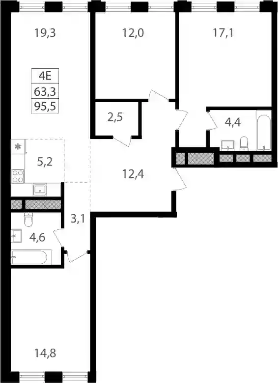 4-к.квартира, 95.4 м², 9 эт. в ЖК Семеновский парк 2 Корпус 1