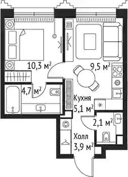 21 818 735 ₽2-к.квартира, 39.4 м², 27 эт.