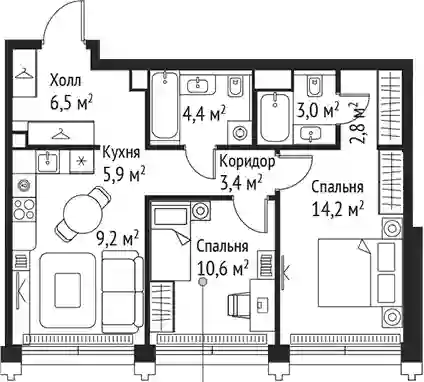 В проекте предложен широкий выбор планировочных решений от студий до 4-комнатных квартир. Есть лоты с кухнями-гостиными, мастер-спальнями, террасами, эркерами, лоджиями и балконами. Все квартиры представлены в подчистовой отделке White box по стандарту MR Base. Из панорамных окон открывается вид на парк и набережную Сходненского канала.