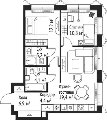 26 894 510 ₽2-к.квартира, 56.2 м², 24 эт.