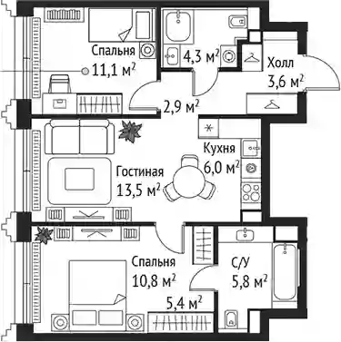 25 754 490 ₽3-к.квартира, 54.3 м², 40 эт.