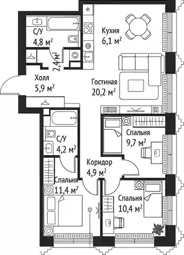 36 854 300 ₽4-к.квартира, 81.5 м², 24 эт.