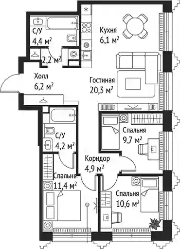 В комплексе предложено множество планировочных решений: в наличии квартиры, как классического типа, так и европланировки. Квартиры сдаются с подчистовой отделкой, высотой потолков 3 м и панорамным остеклением в пол.