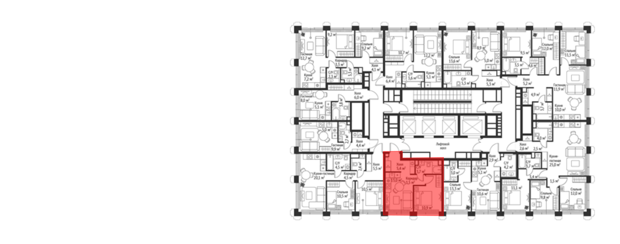 В комплексе предложен широкий выбор планировочных решений: от компактных студий площадью 22 кв. метра до просторных резиденций площадью 120 кв. метров. Планировками предусмотрены мастер-спальни с гардеробной и санузлом, просторные кухни-гостиные, гардеробные и системы хранения, выделенные рабочие зоны в спальнях и террасы с панорамным видом на город. Во всех квартирах панорамные окна и высокие потолки от 2,85 метра. Квартиры сдаются с отделкой White box.