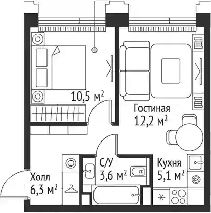 19 739 698 ₽2-к.квартира, 34.4 м², 53 эт.
