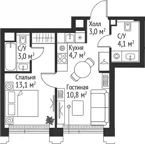21 005 091 ₽2-к.квартира, 41.1 м², 24 эт.