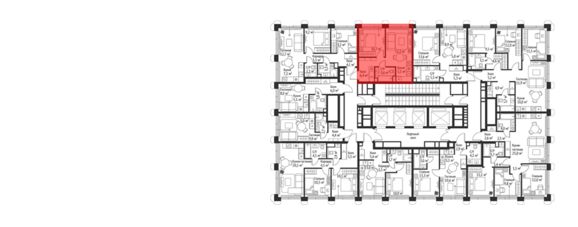 В комплексе предложен широкий выбор планировочных решений: от компактных студий площадью 22 кв. метра до просторных резиденций площадью 120 кв. метров. Планировками предусмотрены мастер-спальни с гардеробной и санузлом, просторные кухни-гостиные, гардеробные и системы хранения, выделенные рабочие зоны в спальнях и террасы с панорамным видом на город. Во всех квартирах панорамные окна и высокие потолки от 2,85 метра. Квартиры сдаются с отделкой White box.