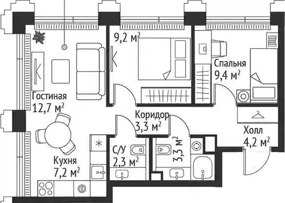 24 780 900 ₽3-к.квартира, 51.6 м², 9 эт.