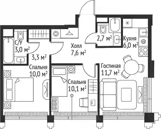 27 421 259 ₽3-к.квартира, 55.7 м², 39 эт.