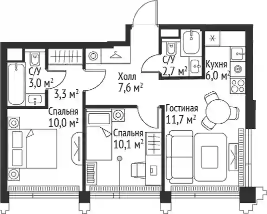 В комплексе представлены квартиры с 1–3 спальнями и таунхаусы. Квартиры сдаются с предчистовой отделкой MR BASE, что позволяет сконцентрироваться на создании интерьера под свой стиль. В квартирах установлены системы «Умная квартира» с контролем освещения и отопления, а также предусмотрена защита от протечек.