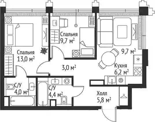 32 017 673 ₽3-к.квартира, 61.7 м², 9 эт.