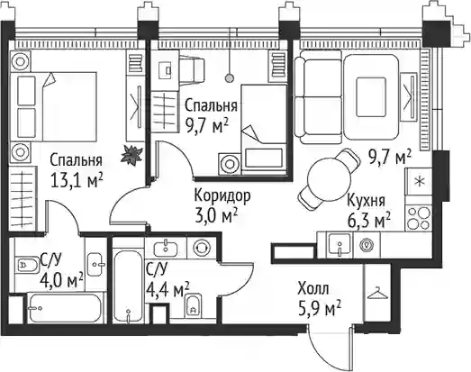 29 447 188 ₽3-к.квартира, 57.5 м², 9 эт.