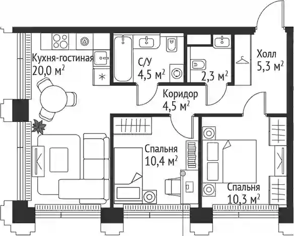 В проекте предложено более 200 уникальных планировочных решений, разработанных с учетом розничных сценариев жизни. Планировками предусмотрено разделение пространства на общую и частную зоны. Уникальные форматы включают в себя лоты с террасами, мастер-спальнями, дополнительными построчными комнатами и кладовыми при кухне. Все квартиры сдаются с отделкой White Box. Из панорамных окон квартир открываются виды на парк «Долина реки Сетунь» и центр Москвы.