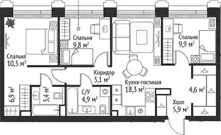 30 122 300 ₽3-к.квартира, 58 м², 27 эт.