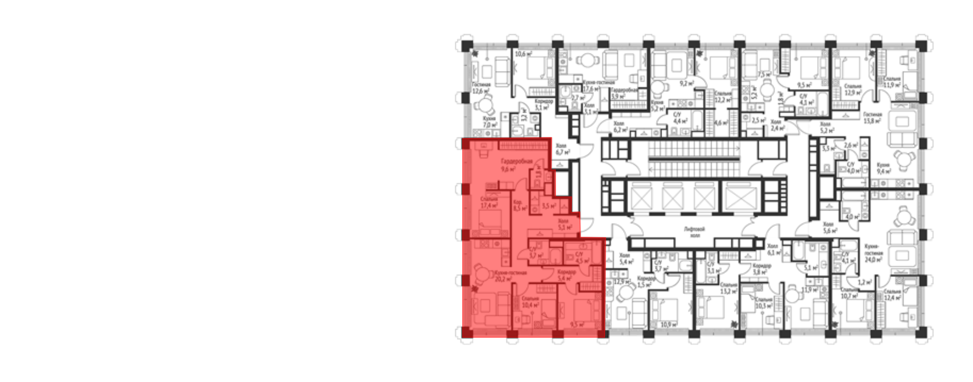 В комплексе предложен широкий выбор планировочных решений: от компактных студий площадью 22 кв. метра до просторных резиденций площадью 120 кв. метров. Планировками предусмотрены мастер-спальни с гардеробной и санузлом, просторные кухни-гостиные, гардеробные и системы хранения, выделенные рабочие зоны в спальнях и террасы с панорамным видом на город. Во всех квартирах панорамные окна и высокие потолки от 2,85 метра. Квартиры сдаются с отделкой White box.