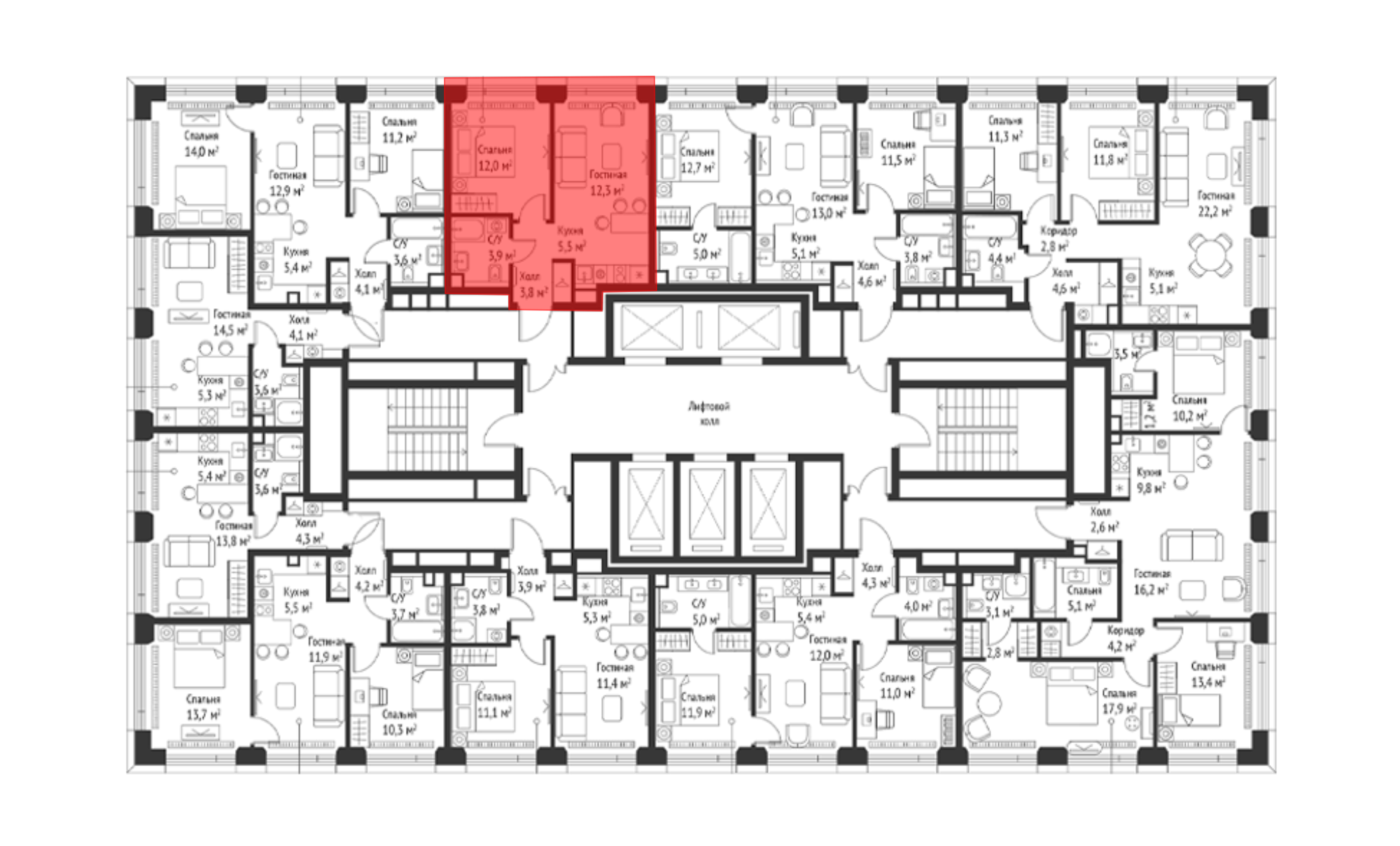 В комплексе предложен широкий выбор планировочных решений: от компактных студий площадью 22 кв. метра до просторных резиденций площадью 120 кв. метров. Планировками предусмотрены мастер-спальни с гардеробной и санузлом, просторные кухни-гостиные, гардеробные и системы хранения, выделенные рабочие зоны в спальнях и террасы с панорамным видом на город. Во всех квартирах панорамные окна и высокие потолки от 2,85 метра. Квартиры сдаются с отделкой White box.