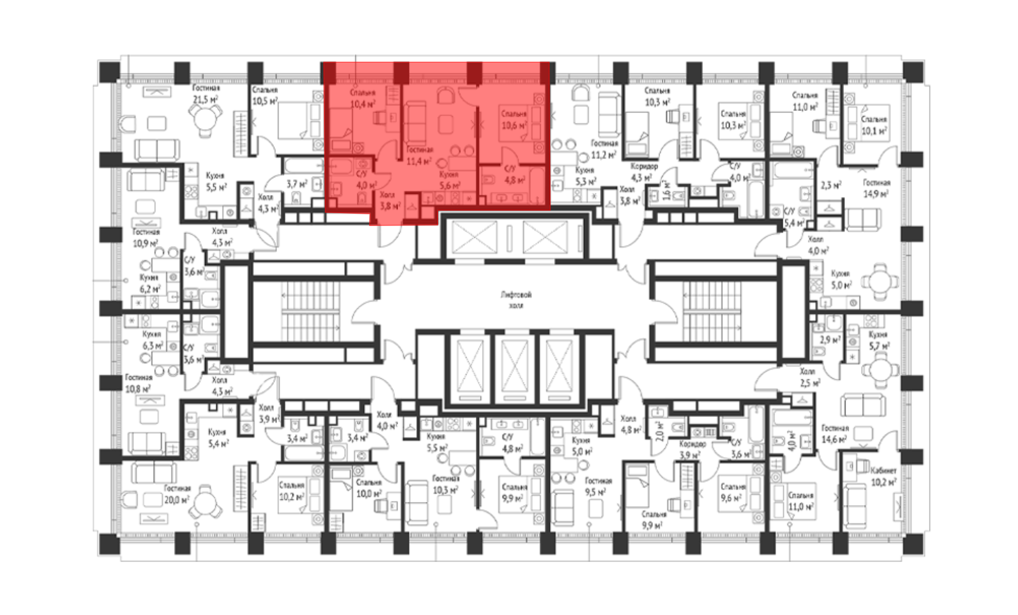 В комплексе предложен широкий выбор планировочных решений: от компактных студий площадью 22 кв. метра до просторных резиденций площадью 120 кв. метров. Планировками предусмотрены мастер-спальни с гардеробной и санузлом, просторные кухни-гостиные, гардеробные и системы хранения, выделенные рабочие зоны в спальнях и террасы с панорамным видом на город. Во всех квартирах панорамные окна и высокие потолки от 2,85 метра. Квартиры сдаются с отделкой White box.