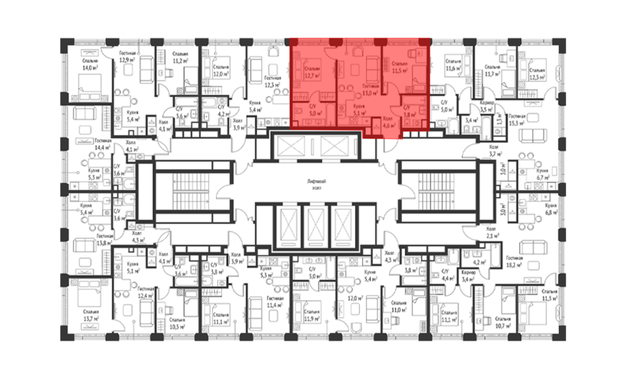 В комплексе предложен широкий выбор планировочных решений: от компактных студий площадью 22 кв. метра до просторных резиденций площадью 120 кв. метров. Планировками предусмотрены мастер-спальни с гардеробной и санузлом, просторные кухни-гостиные, гардеробные и системы хранения, выделенные рабочие зоны в спальнях и террасы с панорамным видом на город. Во всех квартирах панорамные окна и высокие потолки от 2,85 метра. Квартиры сдаются с отделкой White box.
