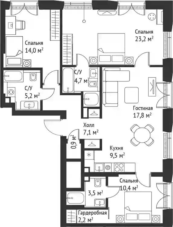 В комплексе предложено множество планировочных решений: в наличии квартиры, как классического типа, так и европланировки. Квартиры сдаются с подчистовой отделкой, высотой потолков 3 м и панорамным остеклением в пол.