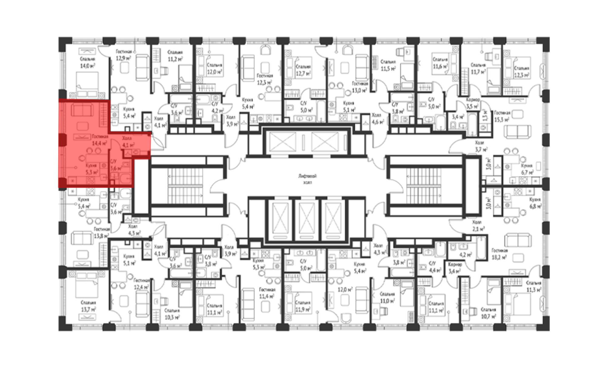 Планировочные решения включают как классические форматы, так и европланировки. Квартиры сдаются без отделки, с потолками высотой 3,1 метра и увеличенной площадью остекления. В некоторых квартирах предусмотрены просторные террасы.