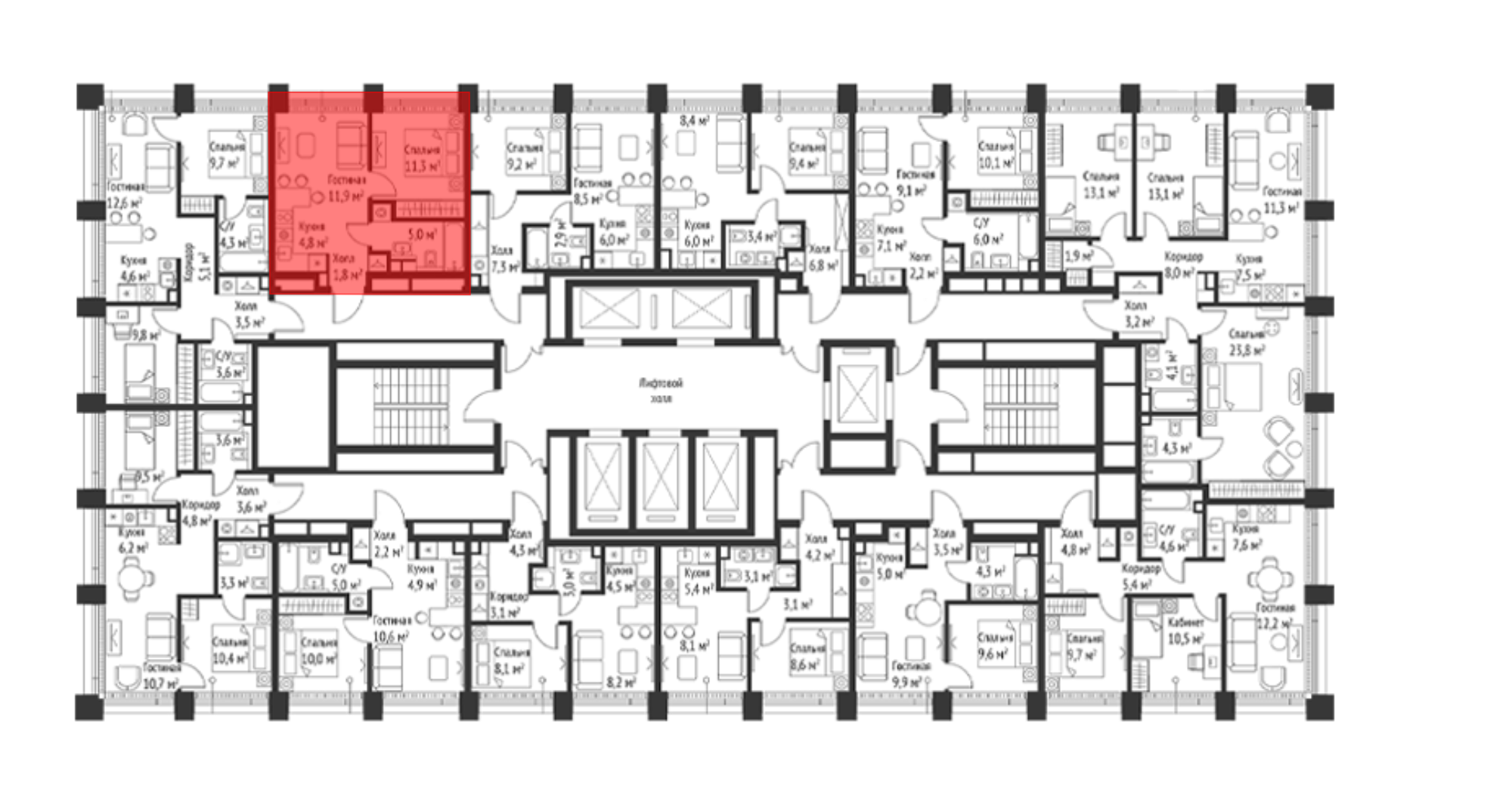 В комплексе предложен широкий выбор планировочных решений: от компактных студий площадью 22 кв. метра до просторных резиденций площадью 120 кв. метров. Планировками предусмотрены мастер-спальни с гардеробной и санузлом, просторные кухни-гостиные, гардеробные и системы хранения, выделенные рабочие зоны в спальнях и террасы с панорамным видом на город. Во всех квартирах панорамные окна и высокие потолки от 2,85 метра. Квартиры сдаются с отделкой White box.