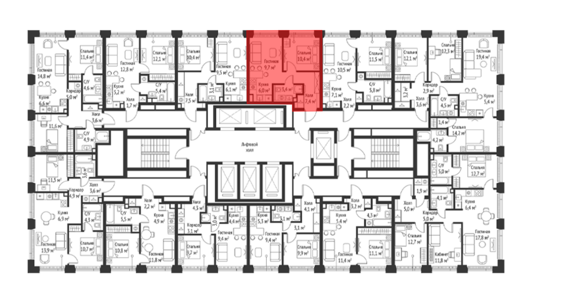 19 894 610 ₽2-к.квартира, 34 м², 56 эт.