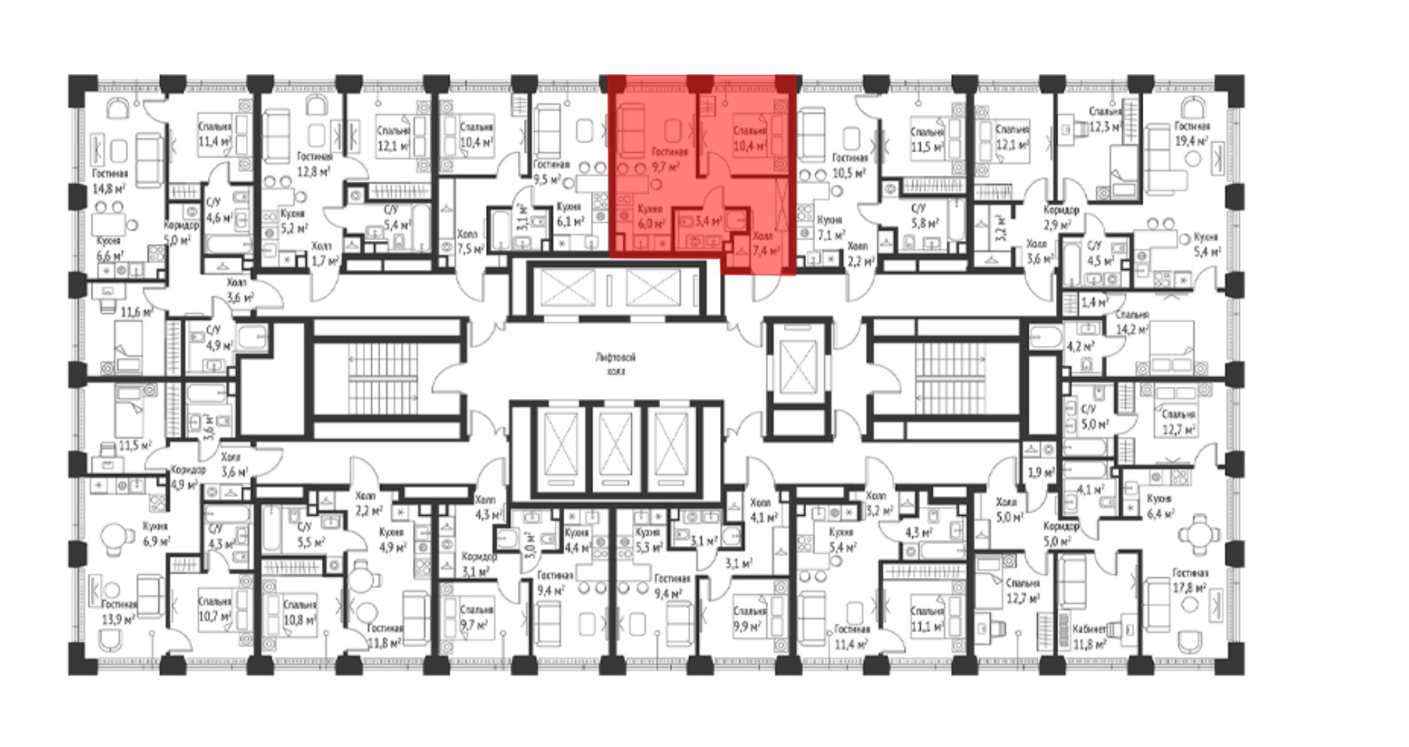 Квартир в ЖК: 74