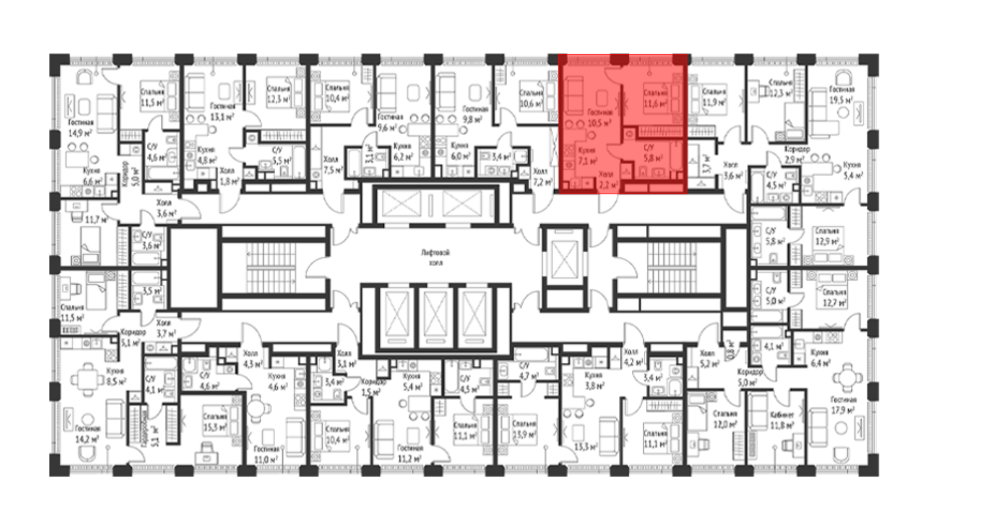 В комплексе предложен широкий выбор планировочных решений: от компактных студий площадью 22 кв. метра до просторных резиденций площадью 120 кв. метров. Планировками предусмотрены мастер-спальни с гардеробной и санузлом, просторные кухни-гостиные, гардеробные и системы хранения, выделенные рабочие зоны в спальнях и террасы с панорамным видом на город. Во всех квартирах панорамные окна и высокие потолки от 2,85 метра. Квартиры сдаются с отделкой White box.
