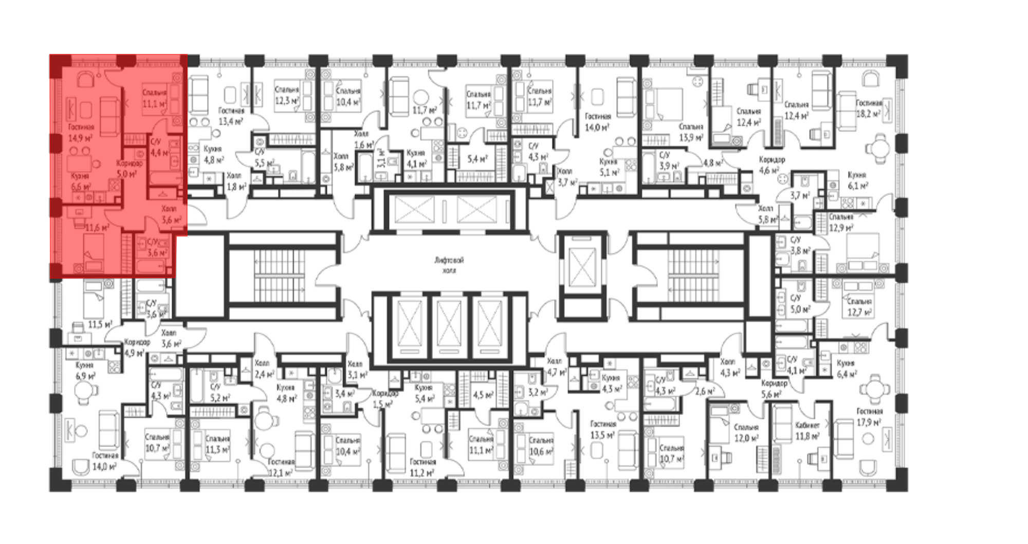В комплексе предложен широкий выбор планировочных решений: от компактных студий площадью 22 кв. метра до просторных резиденций площадью 120 кв. метров. Планировками предусмотрены мастер-спальни с гардеробной и санузлом, просторные кухни-гостиные, гардеробные и системы хранения, выделенные рабочие зоны в спальнях и террасы с панорамным видом на город. Во всех квартирах панорамные окна и высокие потолки от 2,85 метра. Квартиры сдаются с отделкой White box.