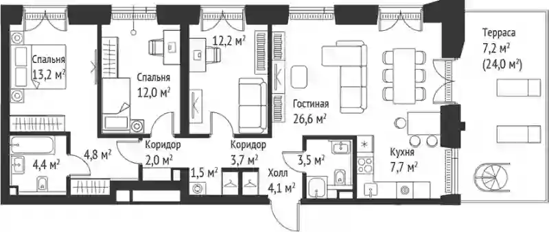 70 263 000 ₽4-к.квартира, 98.8 м², 2 эт.