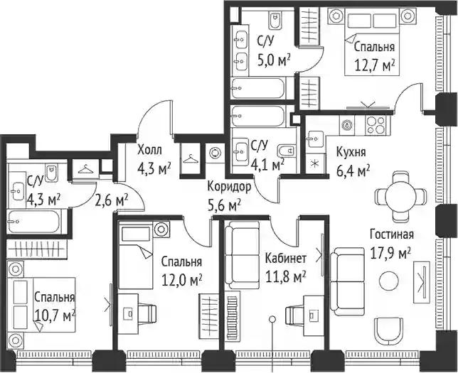 42 960 912 ₽4-к.квартира, 92.3 м², 12 эт.