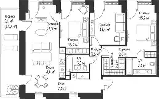 4-к.квартира, 98.8 м², 2 эт. в ЖК SET Корпус Д