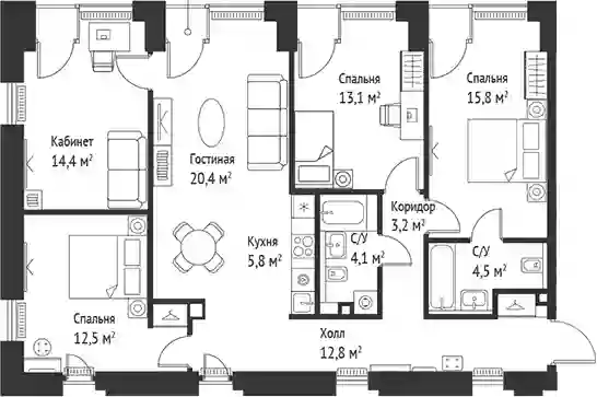 48 608 950 ₽5+к.квартира, 107.9 м², 17 эт.