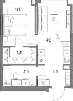 24 308 001 ₽2-к.квартира, 41.2 м², 14 эт.