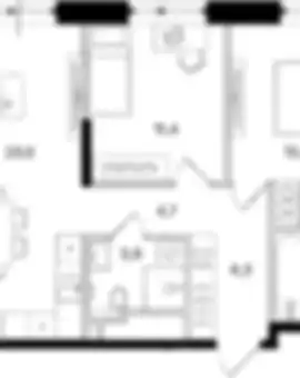 23 667 390 ₽2-к.квартира, 47.9 м², 12 эт.